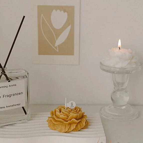 Warm and radiant, Soleil Peony, glows with teh softness of chamomile. Comforting yet uplifting, this scent captures the feeling of sunlight on petals, offering a soothing embrace that brightens your surroundings.