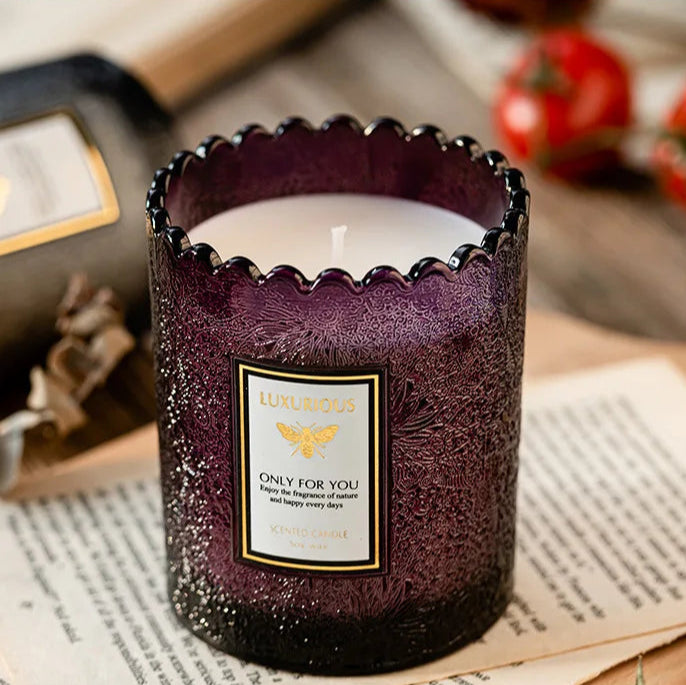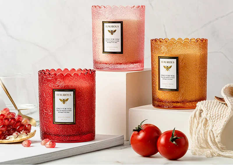 Part of the Aurora Glass Collection, Amber Glow is a texured glass candle that glows like dusk on the water. Magnolia and citrus open the fragrance with a fresh lift, persimmon and orange add juicy depth, and the copaiba balsam with golden amber create a smooth, resinous finish. Clean and smokeless, it delivers up to 40 hours of lumious fragrance while the lacy relief glass jar double as elegant decor.